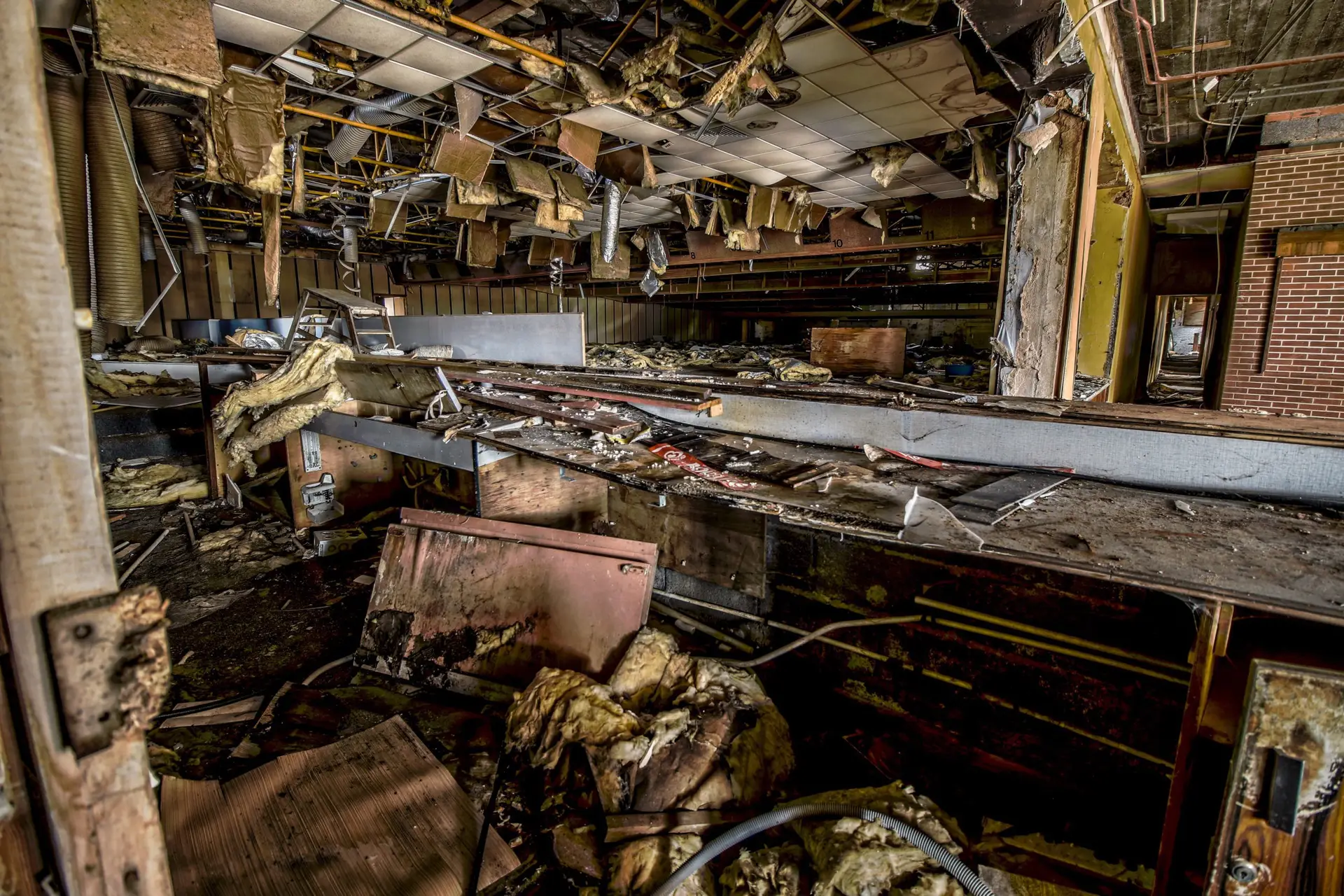 An expropriated bowling that had to close its doors due to the expansion of a regional area. The building was also the only remaining bowling club in the area, with a hundred and fifty members that must now go elsewhere. There is not much left of the site, which has been vandalized and is still covered with smells of a previous fire. The few remains of its former activity let us imagine how nice the place must have been.